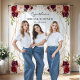 Fundo de cabine de fotos de festa de noivado geométrico floral vermelho burgundy.