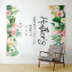 Esse pano de fundo da festa de solteira apresenta flores de hibisco pintadas manualmente e folhas tropicais em tons de rosa, branco, amarelo e verde, assim como um belo animal flamingo. É perfeito receber convidados na sua festa de solteira e também fará um pano de fundo de fotos do excelente;