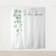 Fundo de Foto de Chá de Noiva com Nome de Eucalipto. Prático fundo para você tirar fotos no seu Chá de Noiva, com um belo ramo de folhas de eucalipto em aquarela fluindo do canto superior esquerdo e conjunto de script informal e elegante para Chá de Noiva em branco. Fácil personalização com nome e data.
