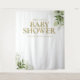Um elegante fundo de foto para chá de bebê com tipografia dourada chique e folhagem verde botânica bonita. Criado por Thisisnotme©