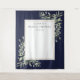 Com delicadas folhas de verde aquarela num fundo azul-marinho, este pano de fundo chic para cabine de fotos de chuveiro de noiva pode ser personalizado com o nome da noiva e data especial. Concebido por Thisisnotme