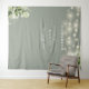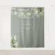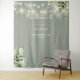 Este pano de fundo de estande de fotografia de casamento com luzes de corda florais verdes sage elegantes pode ser personalizado com seus nomes e data especial. Concebido por Thisisnotme©