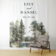 Este fundo de cabine de fotografia de casamento em floresta de lago com aquarela pode ser personalizado com as suas informações em tipografia moderna. Concebido por Thisisnotme©