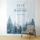Este fundo de fotografia de casamento de floresta de pinheiros de inverno em aquarela rústica e elegante pode ser personalizado com suas informações em tipografia moderna. Projetado por Thisisnotme©