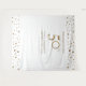 Celebre o aniversário de bodas de ouro de 50 anos da sua empresa com este letreiro de boas-vindas que também serve como fundo para cabine de fotografia Selfie. Um design de confetes dourados e brancos para destacar este marco. Personalize com seus nomes.