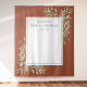 Com delicadas folhas de verde aquarela num fundo de terracota, este pano de fundo chic para cabine de fotos de chá de noiva pode ser personalizado com o nome da noiva e data especial. Concebido por Thisisnotme