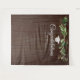 Um belo fundo para fotos para adicionar um toque especial à sua festa de formatura. Este design apresenta um arranjo de eucalipto verde em aquarela sobre uma madeira escura pintada e um chapéu de formatura branco e dourado por baixo. "Parabéns" está em fonte cursiva branca e seu nome e turma/data também estão em fonte sans serif branca.