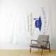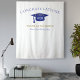 Pano de fundo de celebração de formatura moderna para oportunidades de fotos! Brilho no topo e na parte inferior, chapéu de formatura e letras em azul, modelo de nome em dourado. Turma de em letras cursivas douradas com modelo do ano em branco. Adicione o ano, nome e nome da escola.
