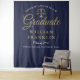 Um elegante fundo de photobooth de formatura com os detalhes do formando em tipografia sofisticada em um fundo azul-marinho. Desenhado por Thisisnotme©