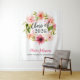 O design do fundo de festa de graduação apresenta um design de coroa de flores da turma de 2026 com belas folhagens pintadas em aquarela verde e flores de dália e rosa primaveris rosa pastel, rosa-bege e pêssego. O texto suave preto e rosa brilhante pode ser personalizado com o nome e a escola do graduado. Um fundo perfeito para fotos de festa de graduação!