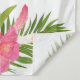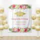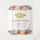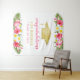 Celebre seu graduado com um fundo de festa de graduação tropical chic para fotos, apresentando um chapéu de graduação em folha de ouro falso com uma moldura exuberante de folhas de palmeira verde e lindas flores de hibisco em tons de rosa quente, amarelo ensolarado, verde e branco. O texto moderno "Parabéns" em rosa magenta e dourado pode ser personalizado com o nome do graduado e ano de formatura.