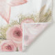 Fundo de tenda de bebe tribal com adorável raposa bebê menina e tenda em um fundo floral de aquarela rosa e dourado. Este grande fundo de tenda tribal de bebe e raposa é facilmente personalizado com o texto de sua escolha.