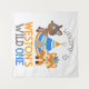 Fundo do primeiro aniversario de Blue Wild One Woodland. Em Laranja Azul, Castanho. Animais Florestais ( Fox and Deer ). Clipart por Impressões de papel de pixel