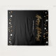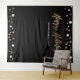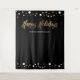 Monte uma cabine de foto selfie que duplique como um sinal de boas-vindas na sua próxima Festa de Natal Corporativa. Impressão dourada com letra "Férias Felizes" para combinar com os convites desta coleção. Pontos de confete dourados e brancos em um fundo preto elegante.