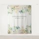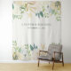 Este deslumbrante fundo de fotobooth de casamento apresenta flores trendy em aquarela em tons de marfim, branco, pêssego e dourado, com folhas verdes.