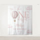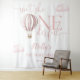 Este encantador fundo fotográfico de festa de aniversário de um ano apresenta um lindo balão de ar quente rosa e nuvens, juntamente com uma tipografia elegante. Desenhado por Thisisnotme©