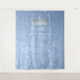 Crie suas próprias tapeçarias elegantes de fundo azul claro e prata com DIY para adicionar brilho ao seu dia especial! Envie um grande "bem-vindo" quando seus convidados chegarem com uma grande faixa/letreiro de tecido... Se você está celebrando uma festa de aniversário de 16/15 anos, casamento de conto de fadas, festa floral, chá de bebê ou noiva princesa real... essas tapeçarias fáceis de fazer com modelo DIY podem tornar o momento ainda mais memorável. Seus amigos e familiares vão adorar tirar fotos na frente dela! O tema azul claro e prata nesse adereço de tecido floral pode funcionar lindamente para uma festa de quinceanera com tema da Cinderela ou uma festa de máscaras de inverno também... O design prateado rústico ilustrado à mão por Raphaela Wilson apresenta um padrão luxuoso de rosas azuis claras, uma coroa de tiara prateada glamourosa e confetes de borboletas com brilho falso. Ao editar ainda mais o design de conto de fadas, outros acabamentos de metal falso em dourado, rose gold e azul bebê podem ser revelados. Basta desocultar essas cam