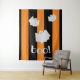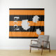 Adicione um divertido toque festivo à sua festa de Halloween com esta adorável tapeçaria, apresentando três fantasmas de desenho animado que dizem "bu!". Com um fundo listrado laranja e preto brilhante e moderno, esta tapeçaria certamente adicionará alegria à sua decoração de feriado ou entretenimento de Halloween. Perfeita para festas de Halloween infantis e adultas, ou outros eventos de outono/outubro. O design ousado e simples torna-se um ótimo pano de fundo para cabine de fotos. Pode ser personalizada com o seu próprio texto, se desejar. Feliz Halloween!