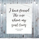 Fundo de citação de casamento em branco com texto preto que diz "Encontrei aquele que a minha alma ama". Personalize com os nomes do casal e a data da festa. Decoração elegante para recepção ou cerimônia.