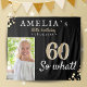 Fundo Preto de Foto de Aniversário de 60 anos Inspirador. Citação engraçada e inspiradora 60 e daí para ele ou para ela. Use os tapetes como pano de fundo para a festa de aniversário de 60 anos. Personalize com seu nome, data, idade e sua foto.