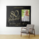 Elegante Tapeçaria de Fundo Preto para Foto de Aniversário de 80 e Fabuloso em Dourado. Texto de 80 e fabuloso em escrita dourada na moda sobre fundo preto. Personalize com sua foto, seu nome e idade, e crie seu próprio fundo de festa de aniversário elegante para a festa de aniversário de uma mulher.