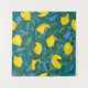 Fundo sem costura com limões e folhas. Frutas tropicais de citros desenhadas num fundo azul brilhante. Ilustração da safra botânica abstrata, aroma, arte, fundo, botânica, citron, design, citrinos, dieta, desenho, exótico, tecido, folhagem, comida, fresco, fruta, frutas, verde, saúde, saúde, colheita, retrato, ilustração,