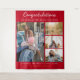 Roteiro de festa de formatura do script de colagem de fotos com pano de fundo para o novo formando. Apresenta 4 fotos do formando e a palavra "Parabéns" está definida. Adicione o nome, a faculdade e o ano de graduação, clicando no botão "Personalizar".