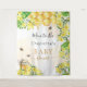 Um fundo colorido com aquarela branca e dourada. Decorado com abelhas, mel derretendo e favo de mel com flores amarelas, flores e um pote de mel. O texto: Mamãe Abelha e Chuveiro de Bebê escrito com um estilo de letra moderna e personalizada. Adicione o nome da futura mamãe. Pode ser usado como uma faixa de boas-vindas, decoração de parede para o chá de bebê ou como um fundo para cabine de fotos.