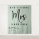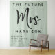 Tapeçaria minimalista moderna "O Futuro Casamento" personalizada em verde sage para o seu chá de noiva. "Sra" é escrito em um grande roteiro elegante. Personalize com o seu nome de casada futuro, primeiro nome e data do chá. O canto inferior é deixado em branco para uma área para os seus convidados tirarem fotos.