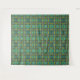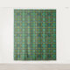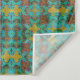 Padrões vibrantes azuis e amarelos se entrelaçam em um design caleidoscópico simétrico. Os detalhes intrincados criam um efeito mesmerizante que lembra uma tapeçaria ou um mosaico.