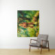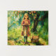 Tapeçaria em um retrato ao estilo aquarela de uma jovem menina em um vestido vermelho parado em um pomar, segurando um cesto de maçãs. Ao redor dela estão maçãs maduras no chão e penduradas em árvores. A cena evoca calor, inocência e a beleza da natureza.