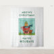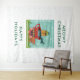 Uma tapeçaria festiva com uma imagem de um adorável gato laranja sentado numa equipe. Vestindo um chapéu de inverno e cachecol. Flocos de neve caindo em dentro verde-claro. Fundo branco de flocos de neve. O texto diz Feliz Natal, Felizes Feriados.