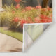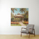 Esta é uma tapeçaria quadrada que tem uma ilustração de um gazebo no parque.