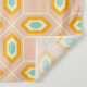 Geometric pattern featuring blue and orange diamond shapes on a peach background. The design creates a vibrant, symmetrical, and retro-inspired look.