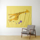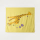 Tapeçaria engraçada do girafa com um girafa dos desenhos animados que mordisca em uma luz - flor roxa e que guardara algumas flores com sua cauda quando patinagem de rolo, no fundo amarelo. Esta tapeçaria bonito da parede do girafa apelará às meninas que amam girafas e ilustrações bonitos dos desenhos animados, assim como à cor amarela alegre. Olhará grande na sala de uma menina do patinador, demasiado.