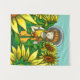 Uma garota num campo de girassóis numa tarde quente de verão.