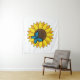 Um desenho de girassol de desenho animado e uma borboleta azul. Este design floral amarelo é uma ideia presente para amantes do verão, amantes da flor e da natureza, e amantes do outono.