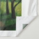 Girl in White Dress A girl in a white dress walking down a path lined with green and purple trees