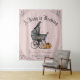 Desenhada à mão a tinta preta, esta tapeçaria de fundo do chá de fraldas, cor-de-rosa pincelada Mãe a Ser "Um Bebê Está a Comprar", apresenta ilustrações desenhadas à mão a tinta preta por Nathalie Portet. A frente apresenta uma antiga carruagem vitoriana para bebês, corvo preto, abóboras e teias de aranha, tudo contra um moderno fundo rosa-pincelado. Personalizar com nome, evento e data do evento. Personalize seu plano de fundo na página do produto clicando em "Personalizar este modelo" antes de adicionar ao seu carrinho.