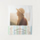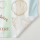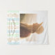Grad club beach party with cabana stripes in shades of mint green, coastal blue and sandy brown with seashells. Photo template via Pixabay licensed under CC0 and must be replaced with your own photo.