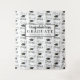 Padrão de chapéu de formatura com tipografia moderna TURMA DE (Ano) em preto e branco e personalizado com o nome da escola e do seu graduado ou deixe GRADUADO para festas em grupo e use como fundo para foto. As escolas podem usar como pano de fundo para fotos na cerimônia de formatura. Entre em contato com o designer se desejar que este design seja modificado ou suprimentos de festa coordenados.
