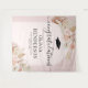Ttapeçaria elegante de graduação boêmica apresentando um fundo rosado poeirento com uma característica de arco floral, folhas secas de palma do deserto com aquarela, grama-pampas, boné de borda-moreira, título "parabéns", seu nome, ano escolar e de aula.