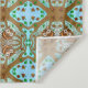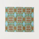 Coruja Desenhada Mão Trabalho de arte em tapeçaria laranja, marrom, azul e verde.