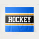 Este esportivo, design atlético, apresenta dentro de texto ousado HOCKEY com uma faixa preta destacada com faixas duplas de corrida branca e amarela contra faixas externas brilhantes e azuis. O texto neste design pode ser personalizado.