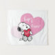Dia de os namorados de amendoins | Ver o Snoopy a segurar-se num coração vermelho, com corações cor-de-rosa no fundo, que dizia: "abraços e beijos".