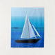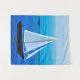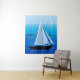 Tapeçaria em Semi abstrato, arte minimalista de poster de um iate no mar, sobre um cobalto e fundo azul-ceruliano