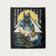 Ilustração de Anubis, antigo deus do Egito, representado no rio Nilo em frente às Pirâmides de Giza, segurando um sarcófago de faraó em seus braços. Um sol e hieroglifos como fundo. Anubis é o deus egípcio da mumificação e da vida após a morte, assim como o deus patrono das almas perdidas e dos impotentes. Ele é representado com uma cabeça de casaco.
