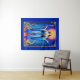 Tapeçaria no cartão de tarô "A Rainha dos Terras". De pé, na região, em vestes azuis, radiantes sob um halo ouro, ela segura uma varinha, simbolizando poder e criatividade. Cercada por galhos e estrelas ferozes, ela exalta confiança, calor e força espiritual