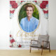Honre a memória do seu ente querido com este elegante banner de tapeçaria floral, projetado para funerais, memoriais e celebrações da vida. Com uma bela composição de rosas vermelhas, azuis claras e brancas, o design inclui um espaço dedicado para exibir uma foto querida do seu ente querido.
