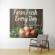Decorem a vossa cozinha com esta impressão de arte de ovos de fazenda. Apresentando a arte rustica dos ovos numa cesta e a citação editável "Fazenda fresca todos os dias - [Name]'s Kitchen", faz uma obra quente e convidativa de decoração de muros inspirada na casa de fazenda. Perfeito para cozinhas, salas de jantar e cafés rústicos.